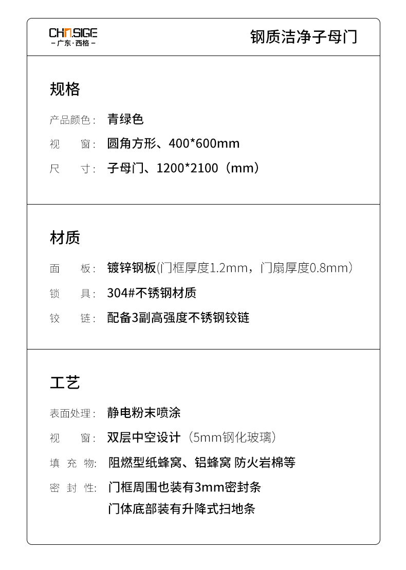 產品簡介:廣東西格大型潔凈門生產廠家