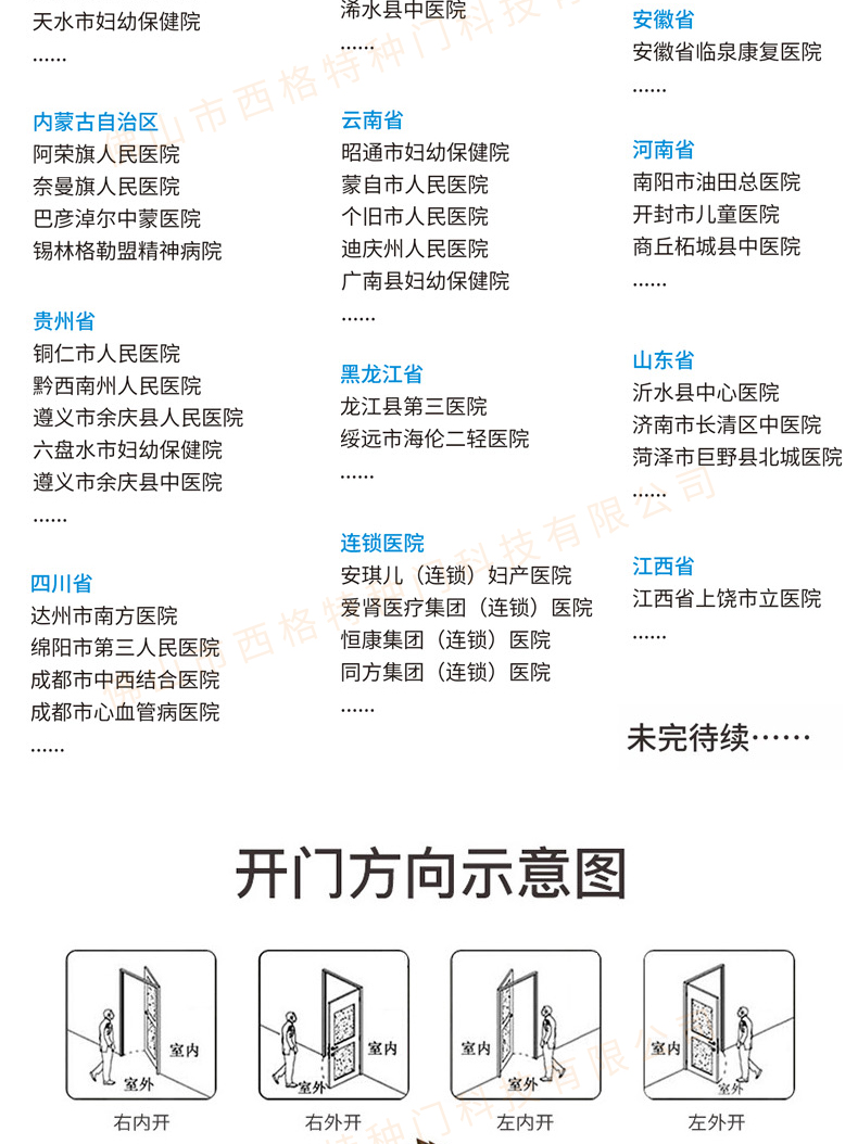 產品簡介:chnsige西格特種門,專業生產病房門,醫院病房門,醫院病房木門,病房木門,木質病房門,鋼質病房門,多鐘款式、顏色,尺寸可定制。